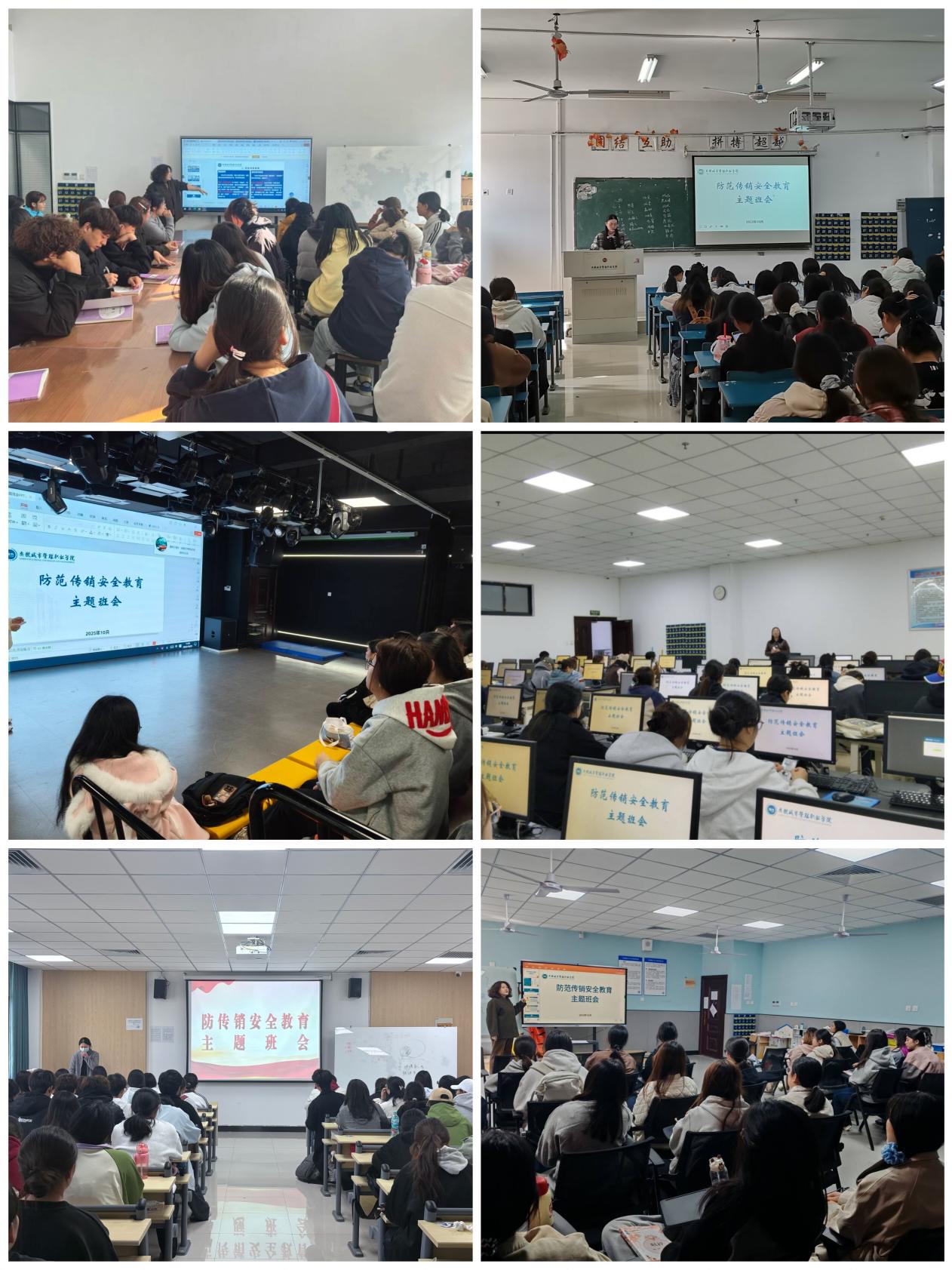 为增强学生防范传销的意识和能力,维护校园安全稳定,近日,我院组织各班级开展了以“携手抵制传销共建平安校园”为主题的班会活动。本次活动由学校学生处统一部署,辅导员精心准备,通过多种形式帮助学生认清传销本质,掌握防范技能。