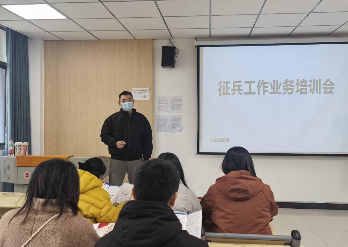 为扎实推进年度征兵入伍工作,切实提升辅导员征兵政策宣讲能力,确保征兵工作落地见效,近日,我院特邀校征兵办公室开展征兵工作专项培训会,23级专兼职辅导员参会学习。