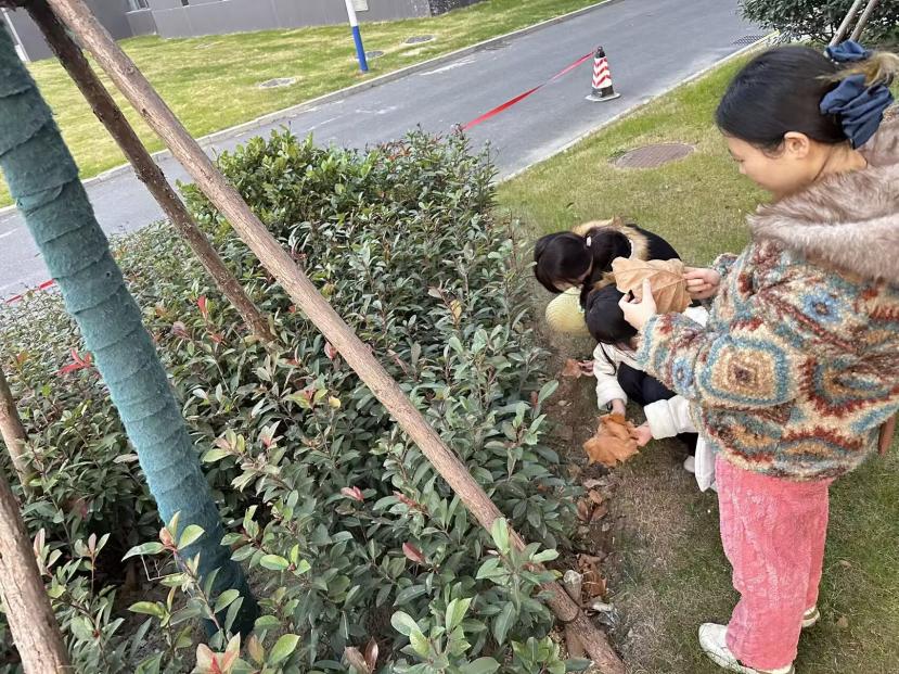 活动中,同学们拎着纸袋穿梭在校园林荫道,仔细挑选形态独特的枯枝和色泽鲜艳的树叶,不少人还蹲在树下比对叶片的形状,回到教室后,大家围坐在一起动手创作,有人用彩绳将落叶串成风铃,有人把枯枝拼接成小圣诞树,还点缀上干花装饰。活动最后,所有人一起捡起现场的碎叶和绳头,把场地清理得干干净净。